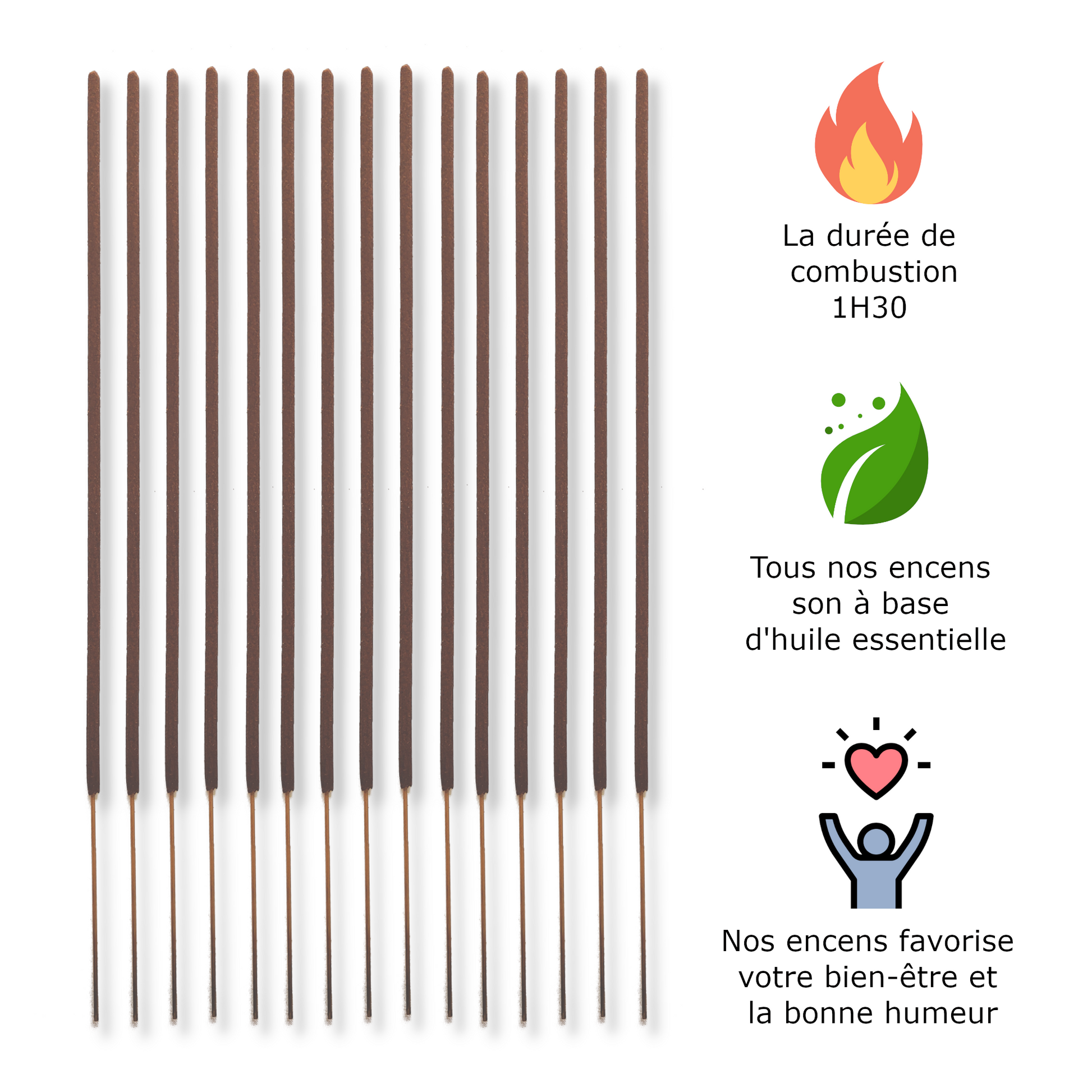 Idéal pour parfumer une pièce ou pour une approche spirituelle lors des séances de méditation. En effet ils favorisent la relaxation, la concentration, la paix, le bien-être intérieur. C'est le meilleur parfum d'intérieur agréable et parfait pour détendre l'atmosphère.